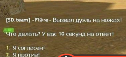 Опубліковано 9 вересня9 верес Адміністратор Knife Duel За допомогою даного плагіна Ви зможете викликати противника на дуель, але тільки тоді, коли залишитеся 1vs1. Для виклику на дуель необхідно просто чиркнути ножем будь-яку поверхню. Плагін чудово підійде для Public сервера. Приємної Вам гри та гарного дня.Інструкція з встановлення:1. Завантажити архів з нашого сайту та розпакувати на зручне місце на вашому комп'ютері;2. Скопіюйте плагін knife_duel.amxx у папку на сервері /addons/amxmodx/plugins/. 3. Файл knife_duel.sma кидаємо в папку /addons/amxmodx/scripting/.4. Прописуємо плагін у файлі /addons/amxmodx/configs/plugins.ini(додаємо рядок knife_duel.amxx ). 5. Перезапускаємо сервер або змінюємо карту. Інформація Додав Ciko Додано 09.09.25 Категорія Плагіна Перегляд файла