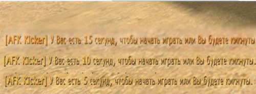 Опубліковано 9 вересня9 верес Адміністратор AFK Kicker Даний плагін кикатиме гравців, які стояли і не рухалися більше 40 секунд. Плагін чудово підійде для Public серверів. Крім цього, плагін був зроблений повністю російською мовою. Приємної Вам гри та більше позитивних емоцій.Інструкція з встановлення:1. Завантажити архів з нашого сайту та розпакувати на зручне місце на вашому комп'ютері;2. Скопіюйте плагін afkkicker.amxx у папку на сервері /addons/amxmodx/plugins/. 3. Файл afkkicker.sma кидаємо в папку /addons/amxmodx/scripting/. 4. Прописуємо плагін у файлі /addons/amxmodx/configs/plugins.ini (додаємо рядок afkkicker.amxx ). 5. Перезапускаємо сервер або змінюємо карту. Інформація Додав Ciko Додано 09.09.25 Категорія Плагіна Перегляд файла