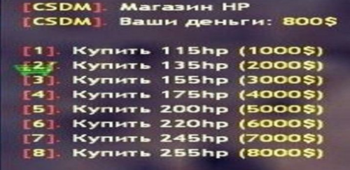 Опубліковано 10 вересня10 верес Адміністратор Health Shop Корисний плагін, за допомогою якого ви зможете купувати здоров'я за гроші. Цей плагін призначений для CSDM сервера. Крім того, він дуже функціональний, все інше дивіться у вихіднику.Команда для виклику меню покупки здоров'я: /menu (команду можна змінити у вихідному коді).Інструкція з встановлення:1. Завантажити архів з нашого сайту та розпакувати на зручне місце на вашому комп'ютері;2. Скопіюйте файл плагіна shophealth.amxx у папку на сервері /addons/amxmodx/plugins/. 3. Файл shophealth.sma кидаємо в папку /addons/amxmodx/scripting/.4. Прописуємо плагін Health Shop v2 у файлі /addons/amxmodx/configs/plugins.ini(додаємо рядок hophealth.amxx ). 5. Перезапускаємо сервер або змінюємо карту. Інформація Додав Ciko Додано 10.09.25 Категорія Плагіна Перегляд файла
