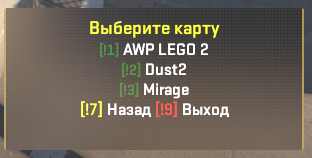 Опубліковано 2 вересня2 верес Адміністратор [AS] Maps Додає в адмін систему можливість змінити картуПрапор доступу - @admin/mapsmaps.ini:"Maps" { "Mirage" "de_mirage" "Dust2" "de_dust2" "AWP LEGO 2" "awp_lego_2" } Інформація Додав Ciko Додано 02.09.25 Категорія Плагіна Перегляд файла